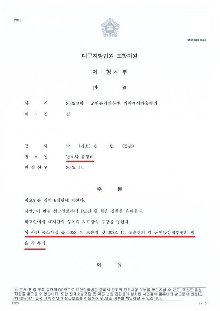 다수의 군인등강제추행 및 위력행사가혹행위를 하였다는 혐의로 재판을